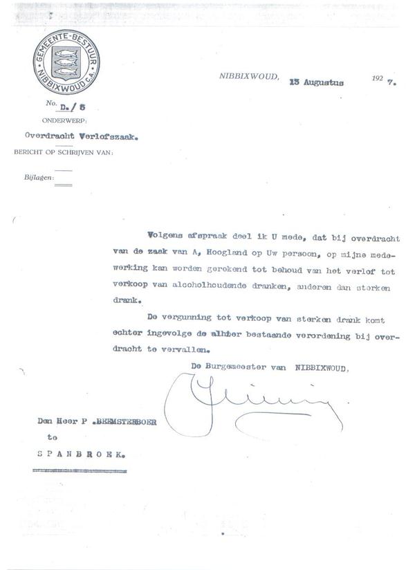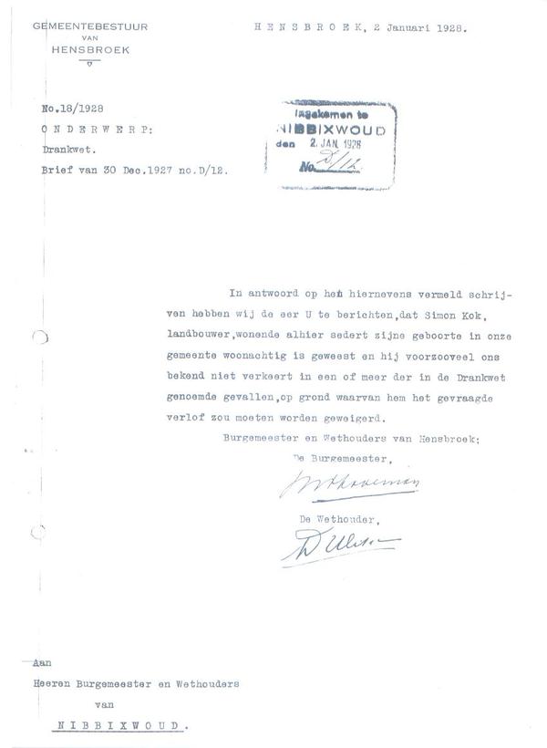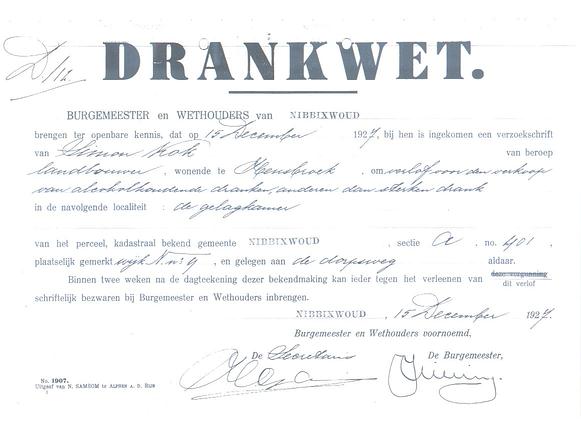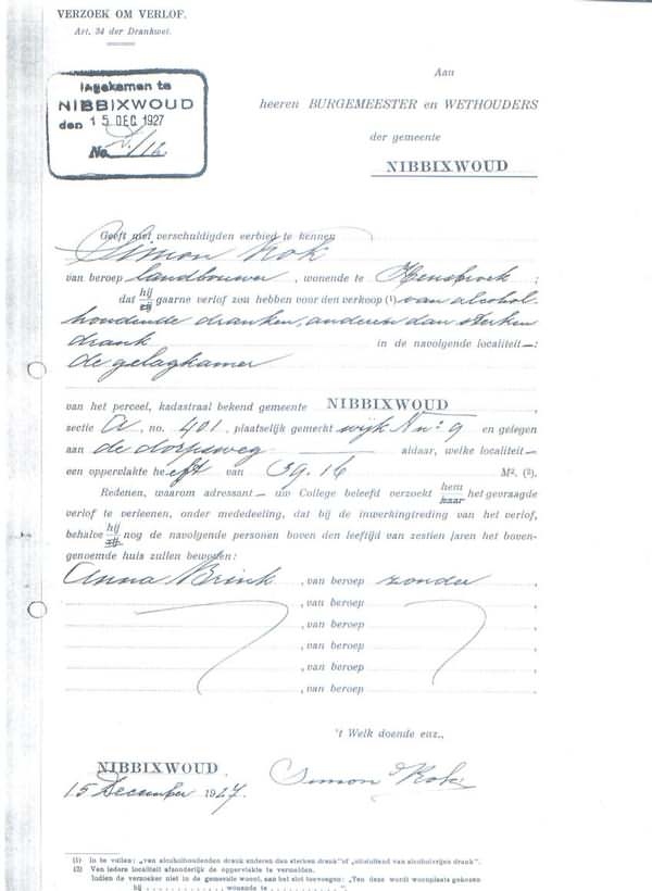 Simon Kok en Anna Brink traden op 29 december 1927 in Hensbroek in het huwelijk. Simon, van beroep landbouwer, en Anna namen in datzelfde jaar een café annex kruidenierszaak over van Oudje Hoogland.